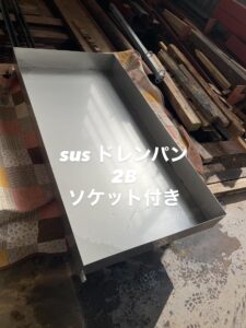 室外機のドレンの水を受けるドレンパンと大型のドレンパン2B仕上げのステンレスで製作しました。底にソケット付きと側面にソケット付きです